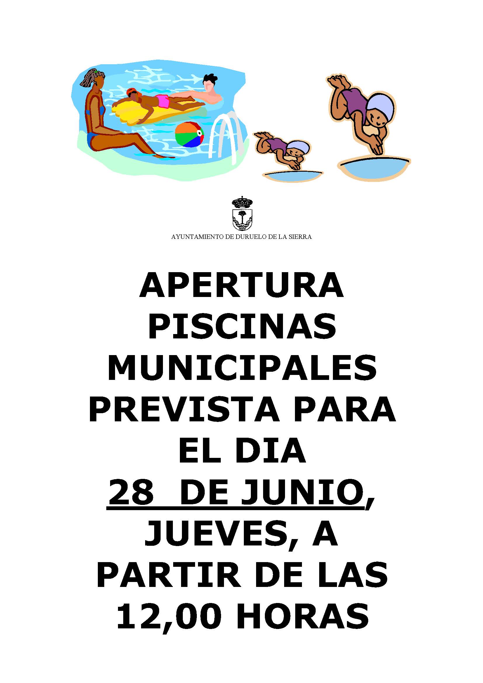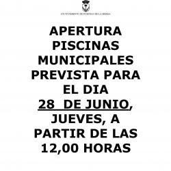 APERTURA PISCINAS MUNICIPALES: DÍA 28 DE JUNIO