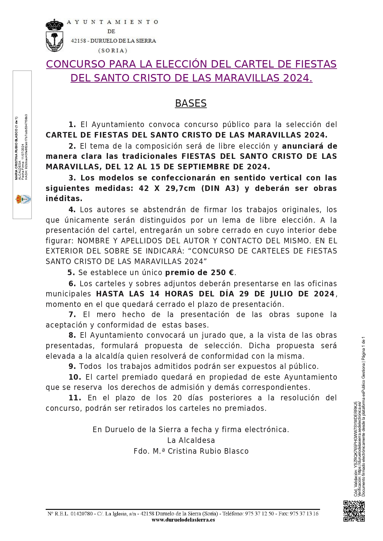 CONCURSO CARTEL DE FIESTAS DEL SANTO CRISTO DE LAS MARAVILLAS 2024
