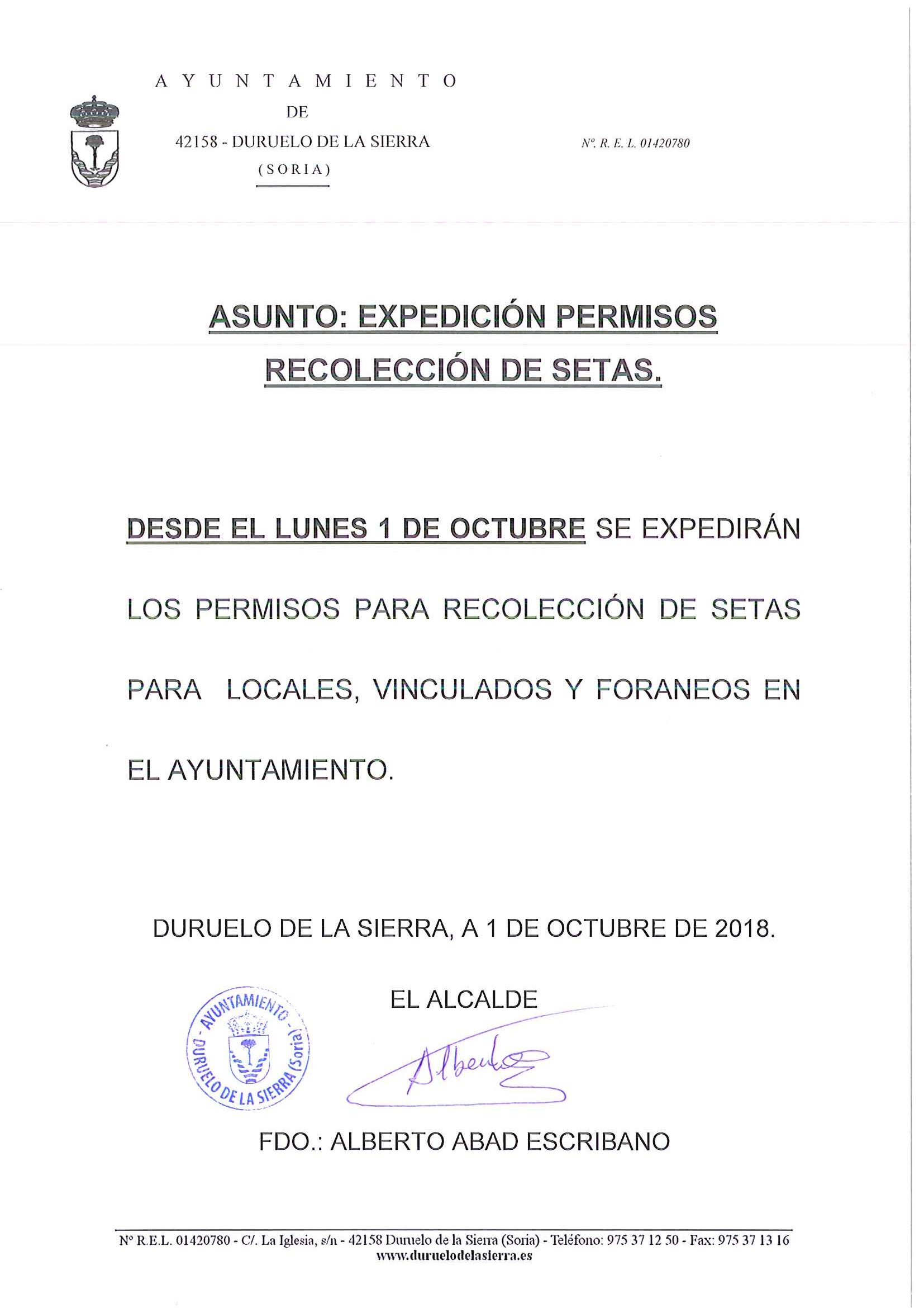 DESDE EL DÍA 1 DE OCTUBRE SE EXPEDIRÁN LOS PERMISOS DE RECOLECTA DE SETAS PARA LOCALES, VINCULADOS Y FORÁNEOS EN EL AYUNTAMIENTO