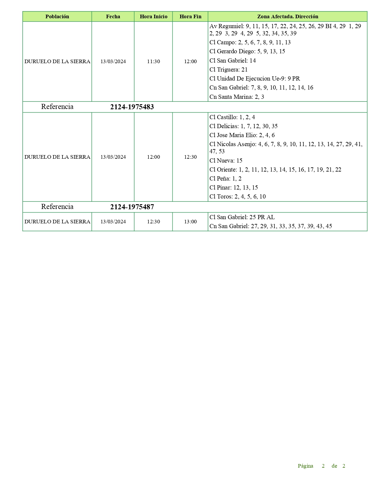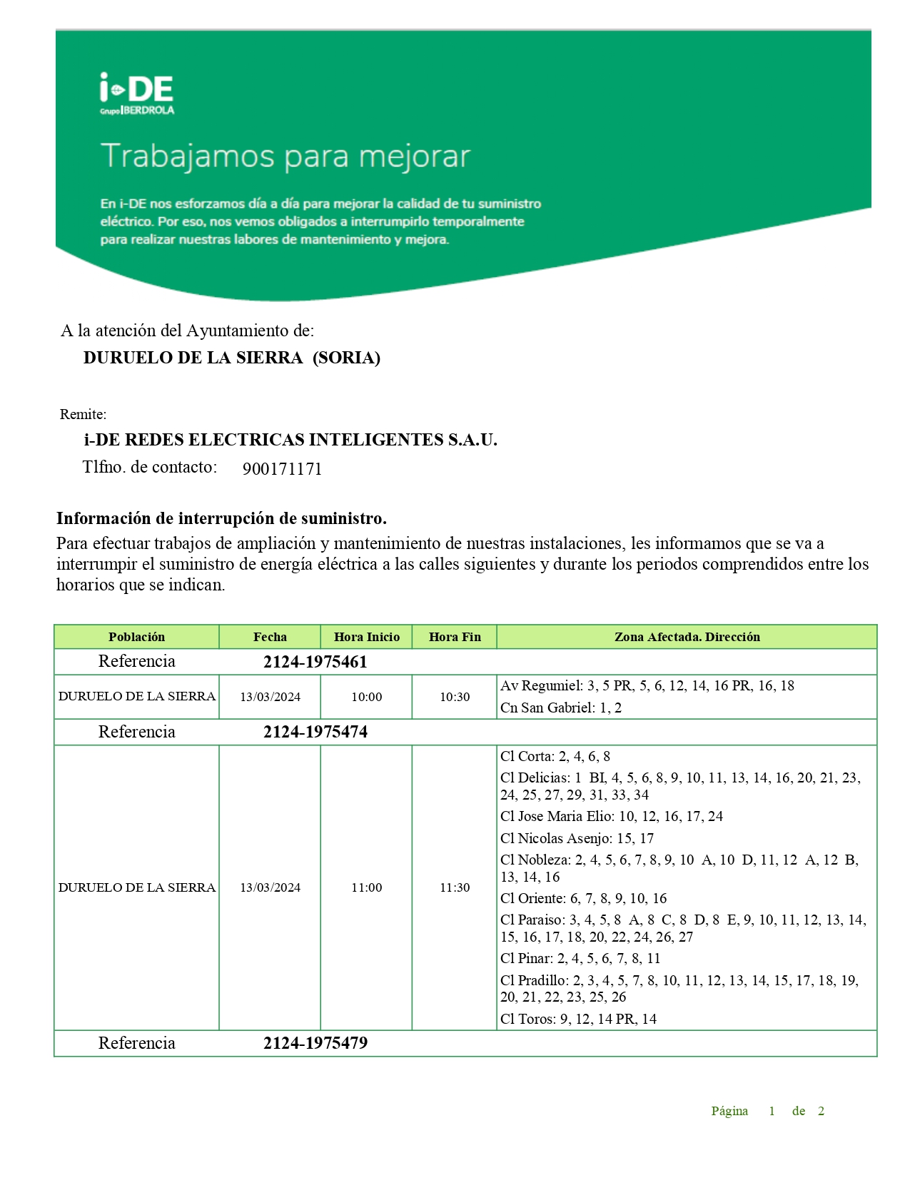 Interrupción suministro de energía eléctrica el día 13/03/2024