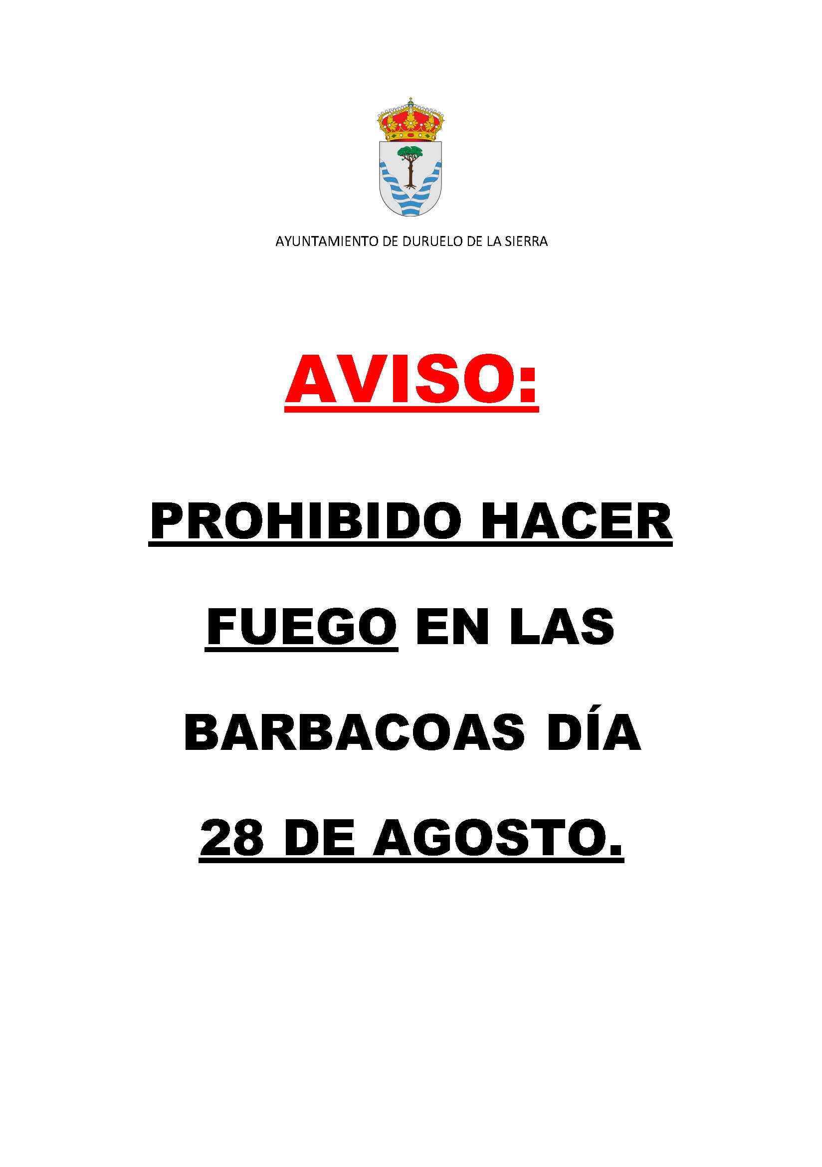 PROHIBIDO HACER FUEGO EN LAS BARBACOAS EL DÍA 28 DE AGOSTO.